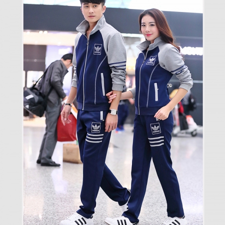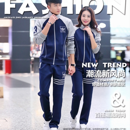 藏青拼灰男女运动服套装订做