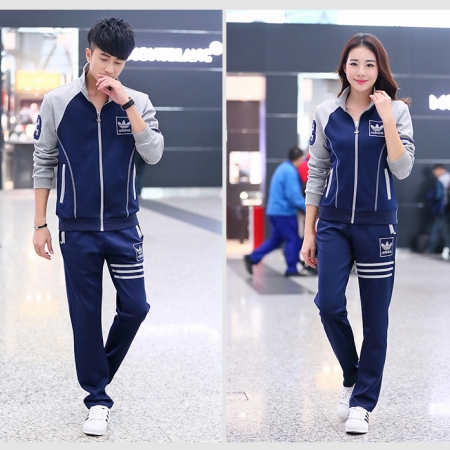 藏青拼灰男女运动服套装订做
